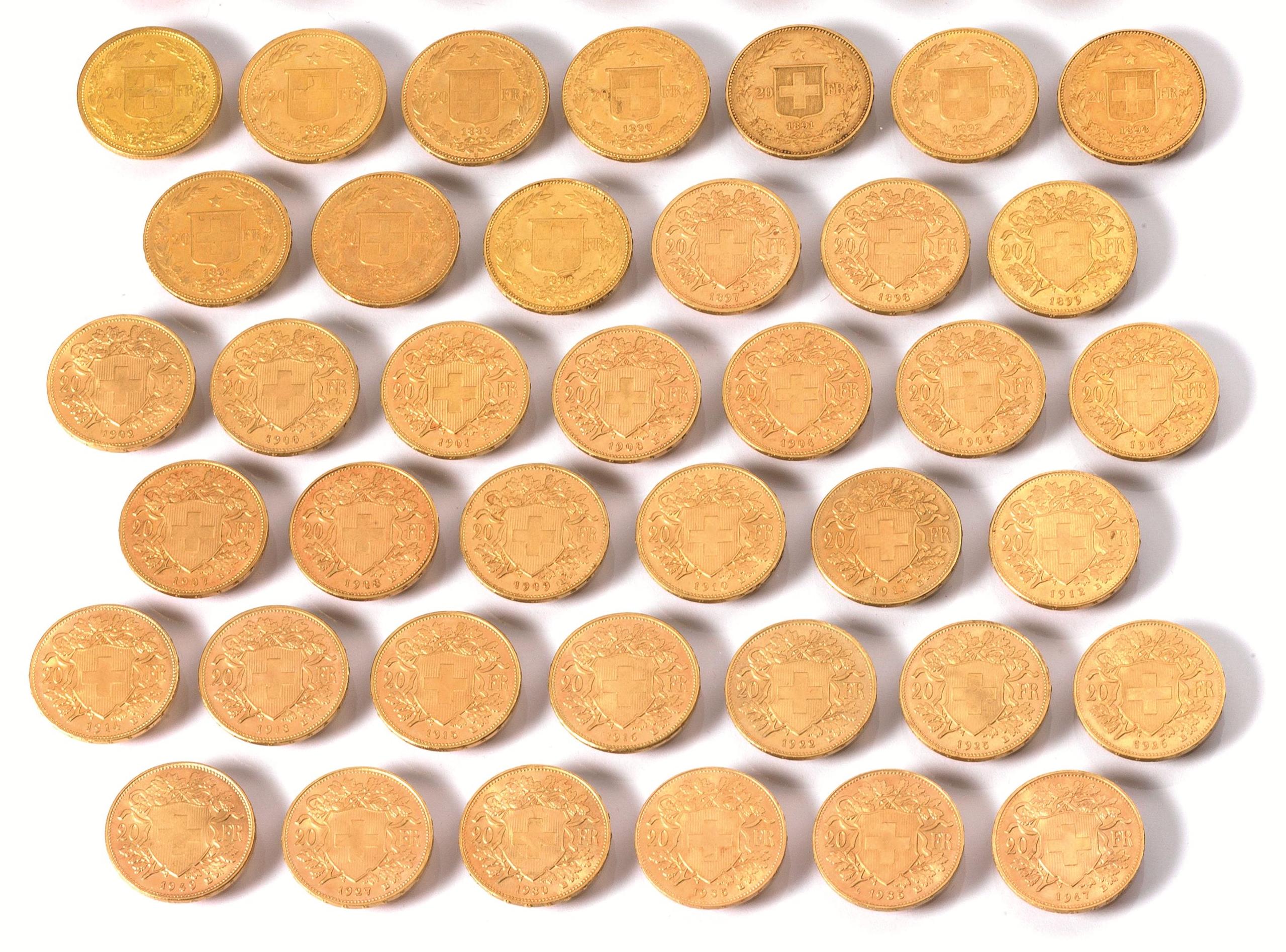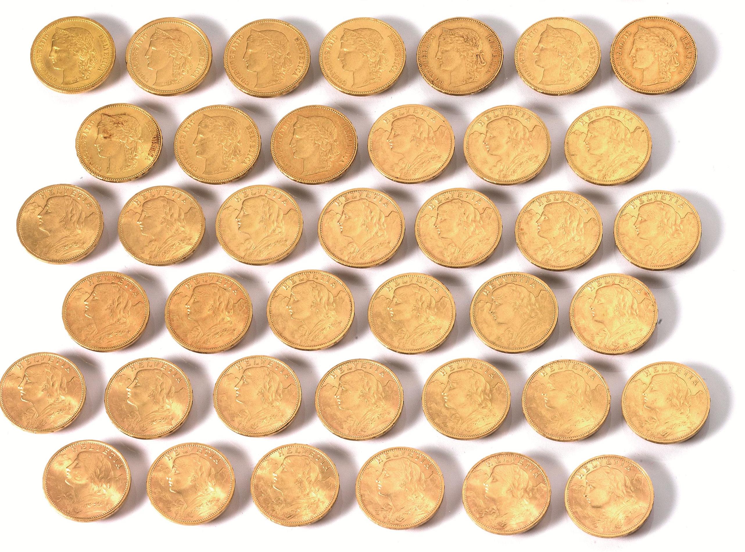 Lotto di trentanove monete da 20 franchi (39):