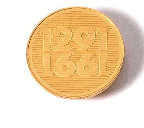 MONETA COMMEMORATIVAda 250 franchi svizzeri in oro del 1991700° anniversario...