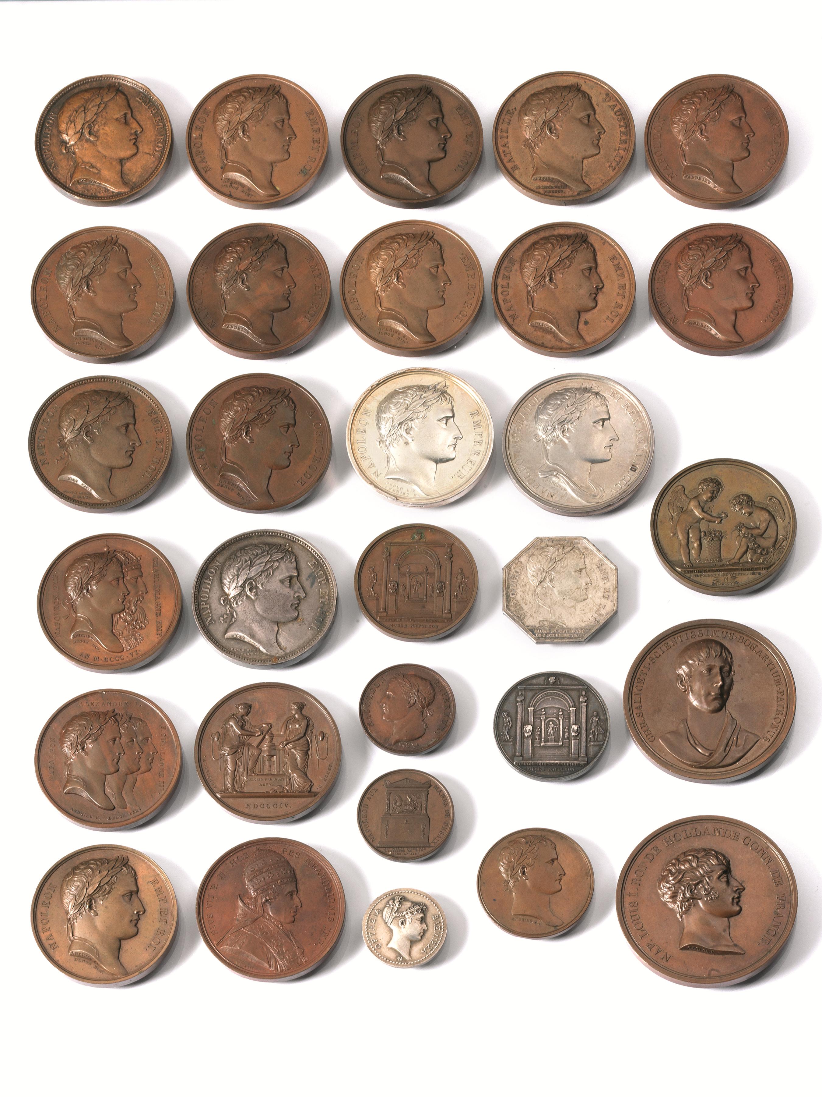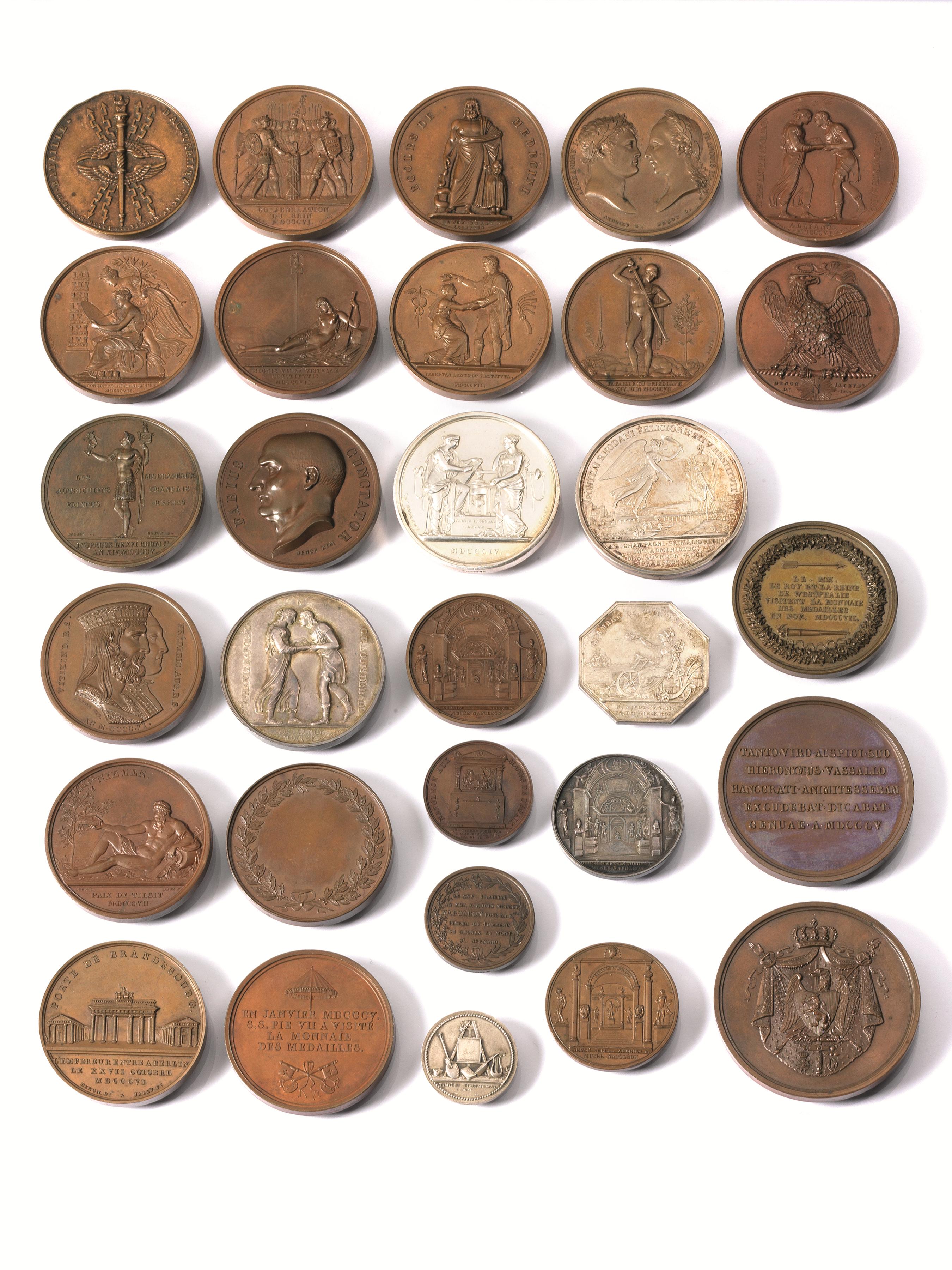 LOTTO DI SESSANTADUE MEDAGLIE NAPOLEONICHE IN ARGENTO E BRONZO (62):Presa di...