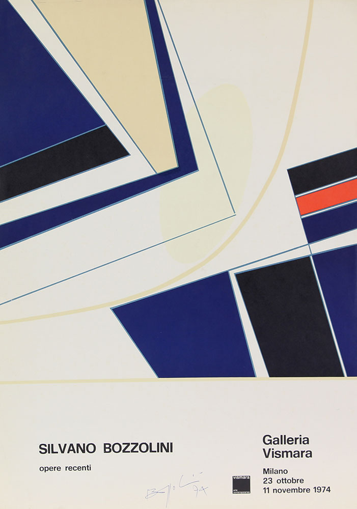 Bozzolini Silvano Manifesto Mostra Personale presso la Galleria Vismara di Milano, 1974 manifesto su carta, cm. 70x48,5 firmato e datato in basso al centro senza cornice