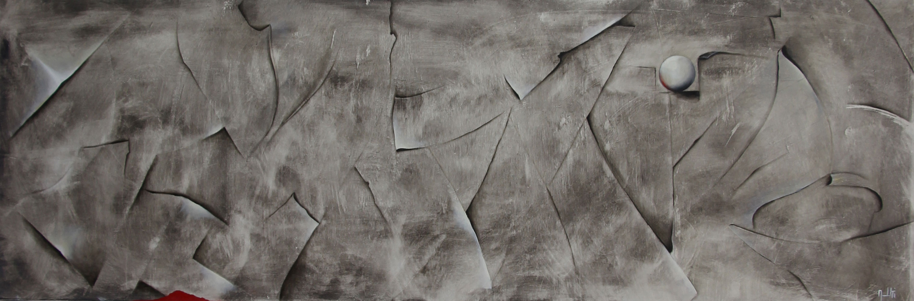 Menichetti Maura Geometria Solida in Grigio, 2013 acrilico su tela, cm. 50x150 firmato in basso a destra, firmato, intitolato e datato al retro senza cornice
