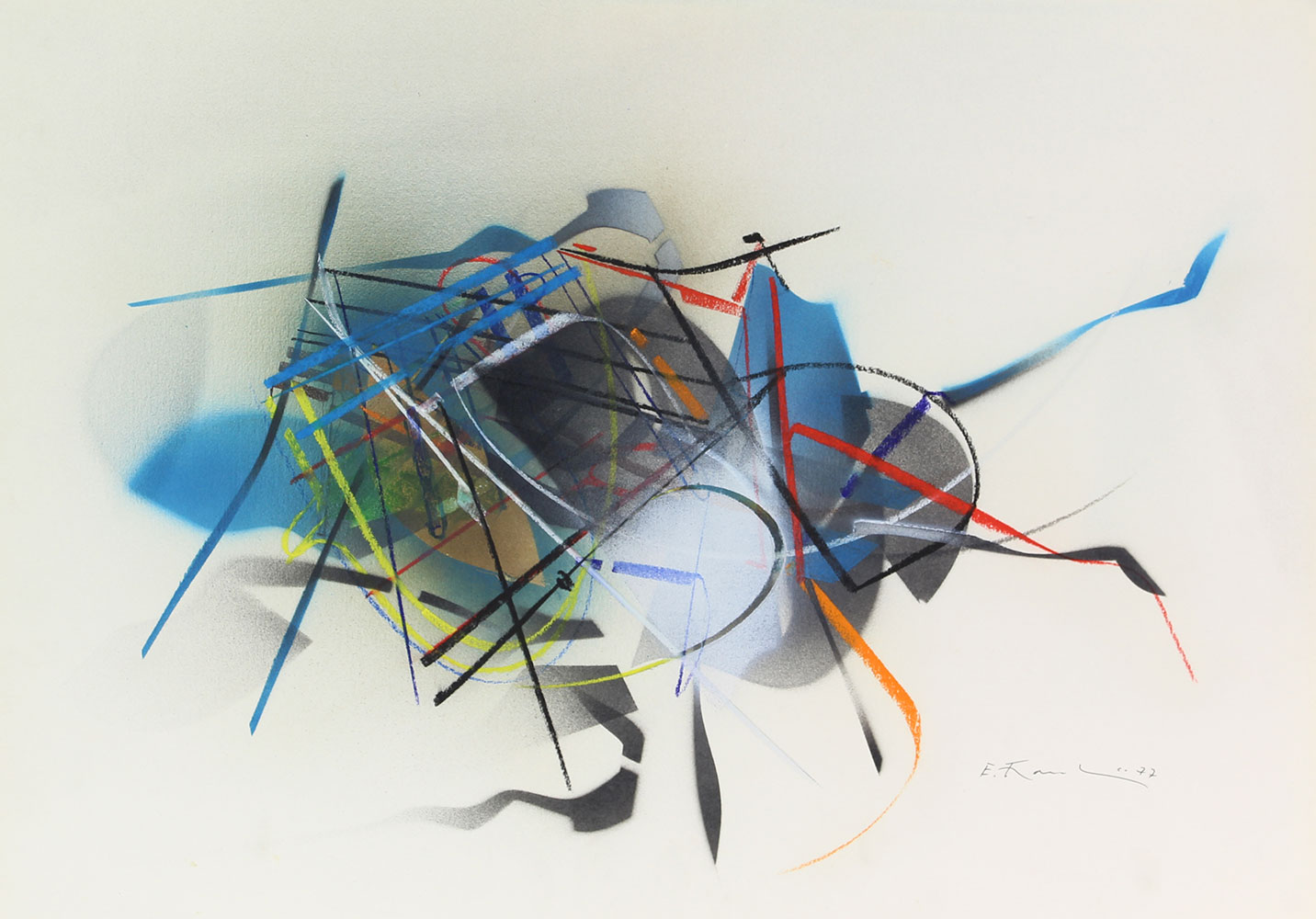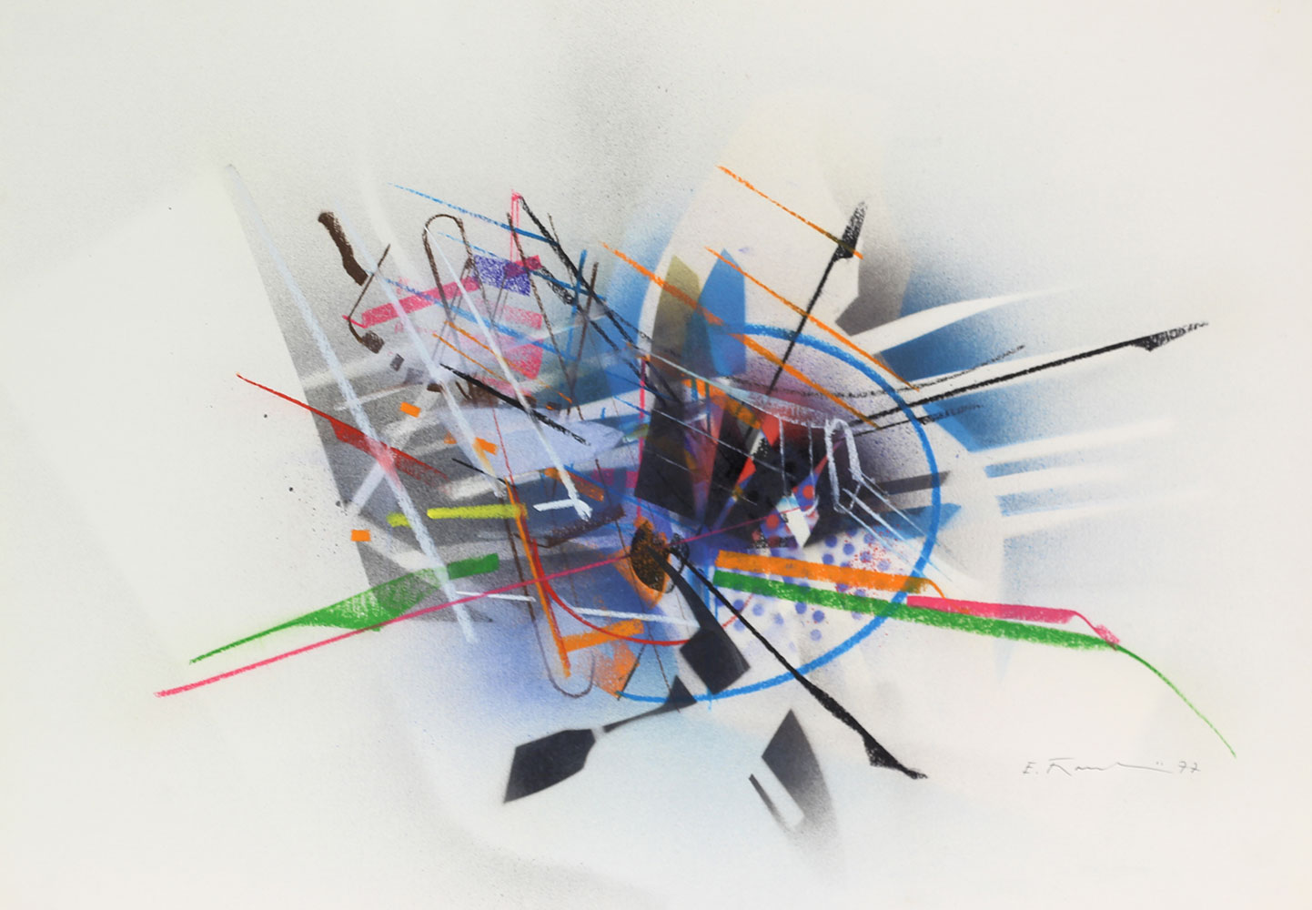 Franceschini Edoardo Lotto di 2 tecniche miste su cartoncino, 1977 cm. 50x70 c.ca caduna firmate e datate in basso a destra senza cornici
