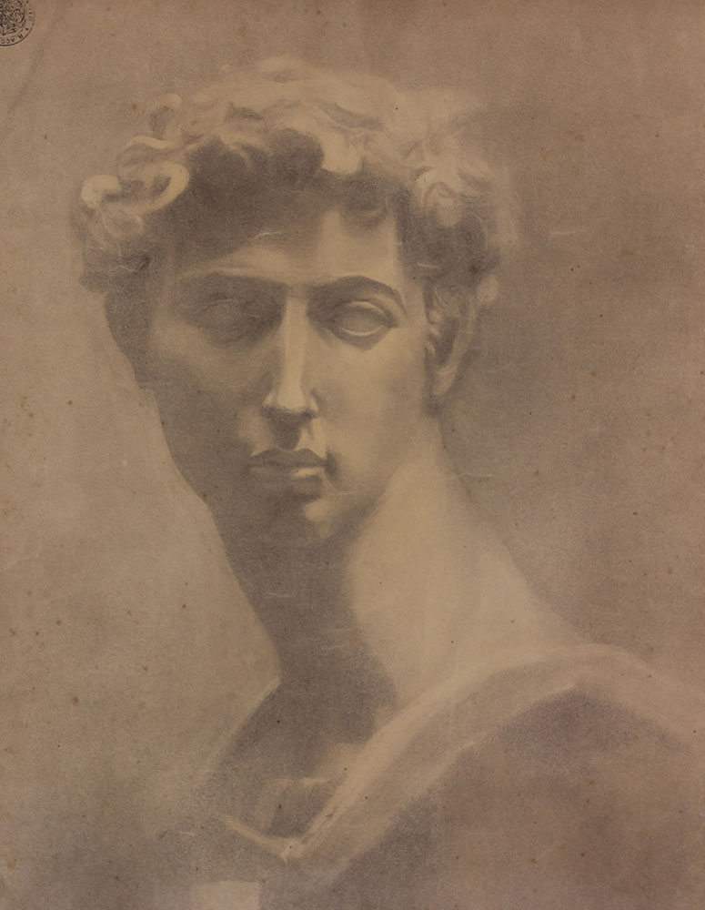 Anonimo Busto Romano carboncino su carta, cm. 56x44 timbro "R. Accademia...