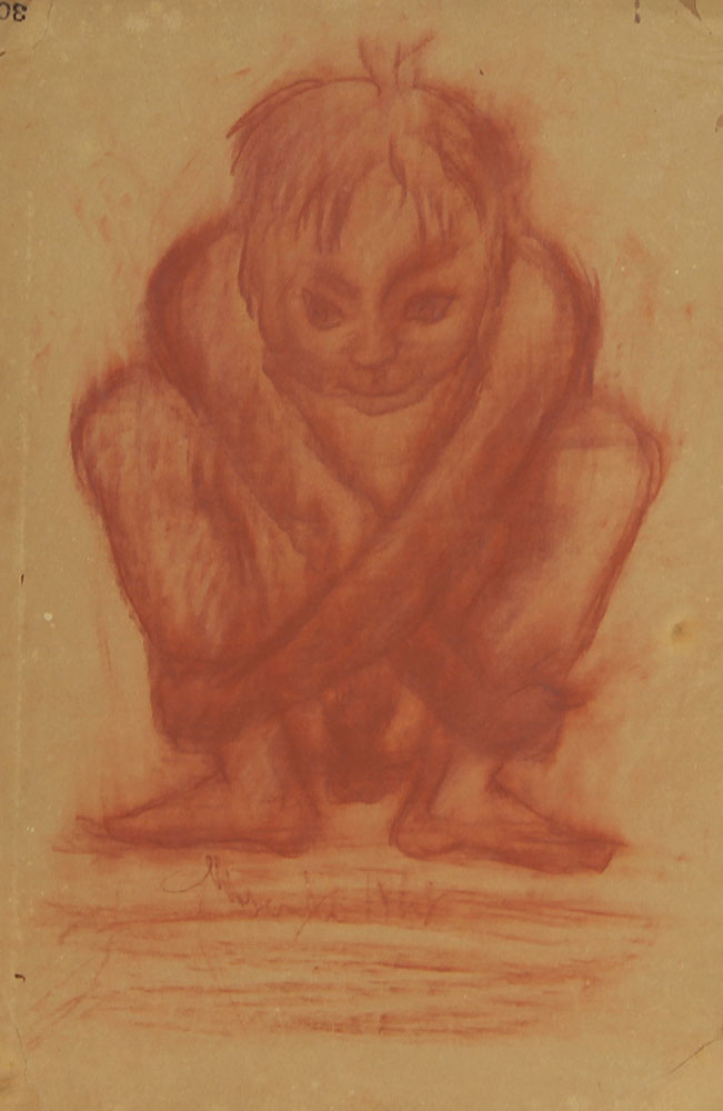 Maserati Mario Fanciullo sanguigna su carta, cm. 44x30 firmato in basso al centro, sono presenti alcuni strappi ai bordi senza cornice