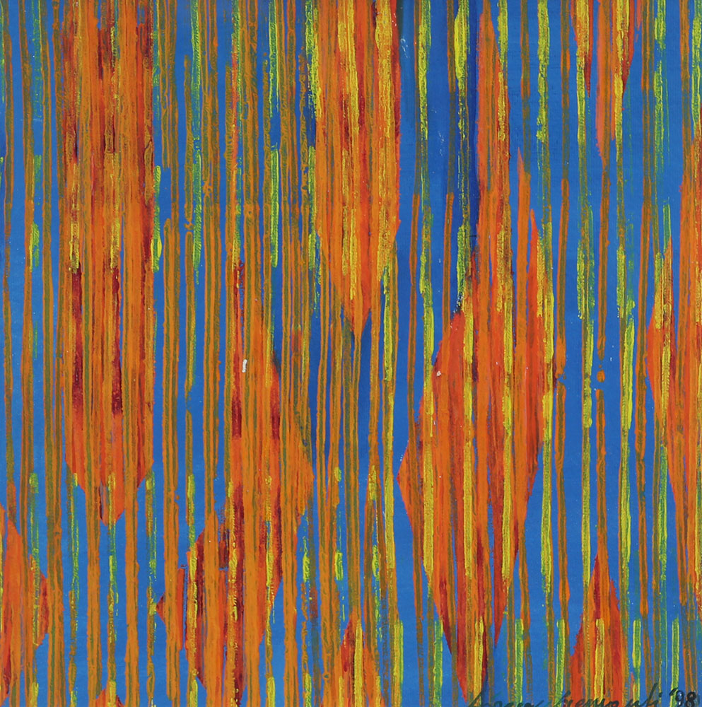 Piemonti Lorenzo Accelerazioni 517, 1998 acrilici su carta cotton 100/100, cm. 34x34 firmato e datato in basso a destra, etichetta Archivio Lorenzo Piemonti al retro, certificato di autenticità dell'Archivio Lorenzo Piemonti su fotografia