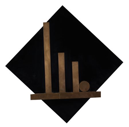 Spaggiari Vaifro La Città del 3000 plastica e ottone, cm. 56,5x56,5 firma incisa al retro, certificato di autenticità dell'artista su fotografia