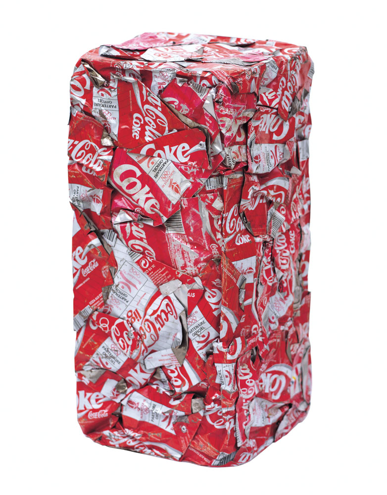 CESAR Marsiglia 1921 - 1998 Compressione, (1988/90) scultura di lattine in alluminio compresse cm. 43x20x20, firma in basso su un lato, opera registrata al numero 3353 presso l'Archivio Denyse-Durand-Ruel come da dichiarazione su foto, provenienze Collezione Ferrero Jean, Marco Soave (AL) e Cudemo Editore (Bordighera) come da riferimenti su foto.
