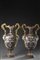 Manifattura italiana inizio del sec. XX Coppia di vasi in ceramica a fondo blu decorati in monocromia con raffaellesche e figure alate. Anse a serpenti avviluppati con mascheroni all'attacco (h. cm 41) (lievi difetti) Italian manufacture of the 20th century. Blue ground ceramic vases (minor defects)