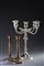 Lotto composto da tre candelabri: uno a cinque fiamme in metallo argentato e...