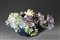 Cachepot in ceramica a fondo azzurro decorata in policromia in rilievo a fiori e rami fogliati. 1940 circa (cm 27x45) (difetti e mancanze) Ceramic jardinière, circa 1940 (defects and losses)