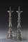 Coppia di antichi piccoli candelieri in ferro battuto a volute fogliate (h cm...