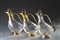Gruppo di tre versatoi in vetro con ghiere e anse in metallo argentato e...