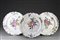 Gruppo di tre piatti in maiolica a bordo mistilineo decorati in policromia con fiori e foglie(diam cm 25) (lievi difetti) Group of three majolica plates (minor defects)