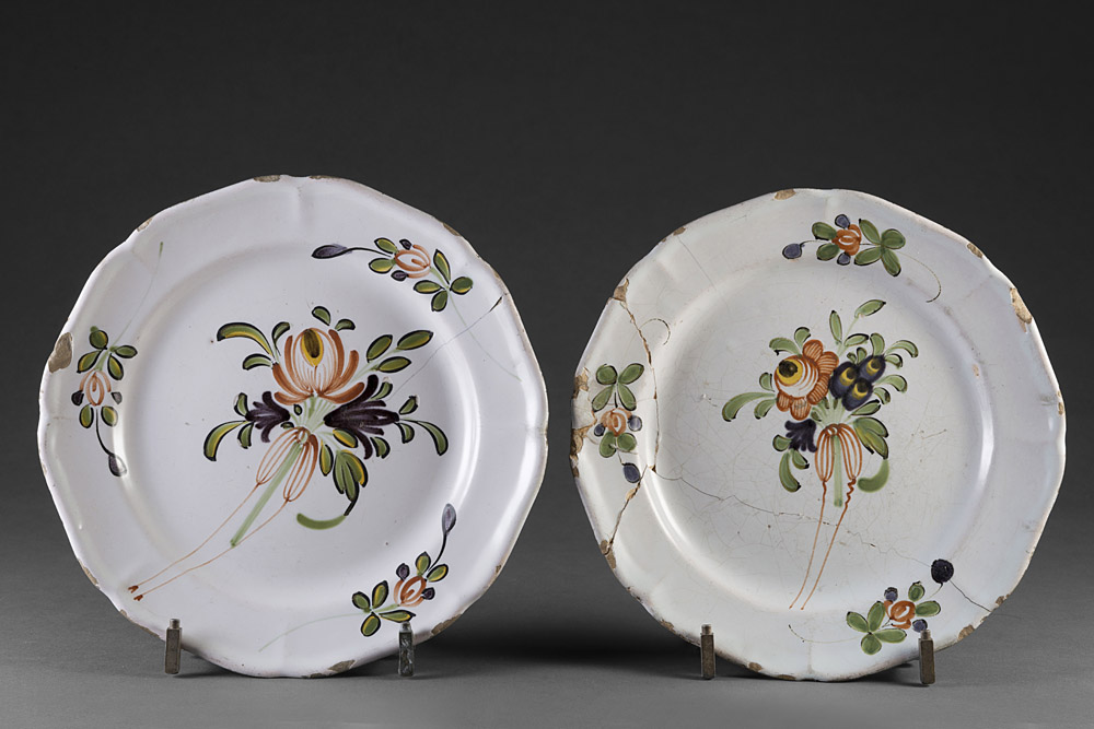 Manifattura francese del sec. XVIII-XIX Coppia di piatti in terraglia...