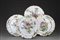 Gruppo di quattro piatti in maiolica policroma a fiori e foglie. Bordo...