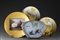 Lotto composto da tre piatti decorati a fiori e gallo ed una placca in...