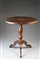 Tavolino da salotto lastronato in noce con fusto tornito e piedi sagomati....