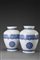 Manifattura marocchina coppia di vasi portafiori globulari in ceramica nei toni del blu con motivi geometrici (h cm 21) (difetti e restauri) Moroccan manufacture. Pair of globular vases (defects and restorations)