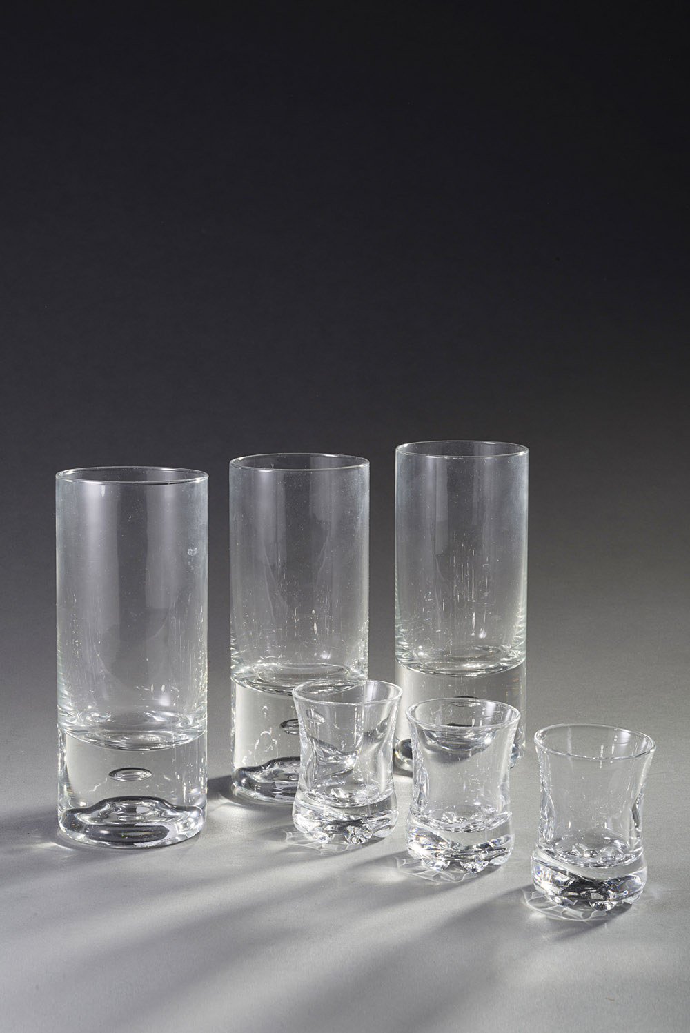 Lotto composto da nove bicchieri da bibita e otto da liquore Lot comprising nine soft-drink glasses and eight liqueur glasses