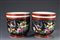 Manifattura inizio del sec. XX Coppia di cachepot in ceramica a fondo nero con fiori e volatili in policromia e profili rosso manganese (cm 17x17) (difetti) Manufacture of the early 20th century. Pair of ceramic jardinières (defects)