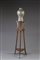 Lotto di un vaso di manifattura orientale decorato con ghiera in metallo ed un trespolo portavaso con intaglio 'liberty' (difetti) Lot comprising an oriental vase and a vase pedestal (defects)