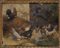 Firma indecifrata 'Galli e galline in un cortile' olio su tela (cm 40x50) in cornice ebanizzata. Tracce di etichetta al retro Undeciphered signature "Chickens and Hens in the Courtyard". Ebonized frame. Traces of label to reverse