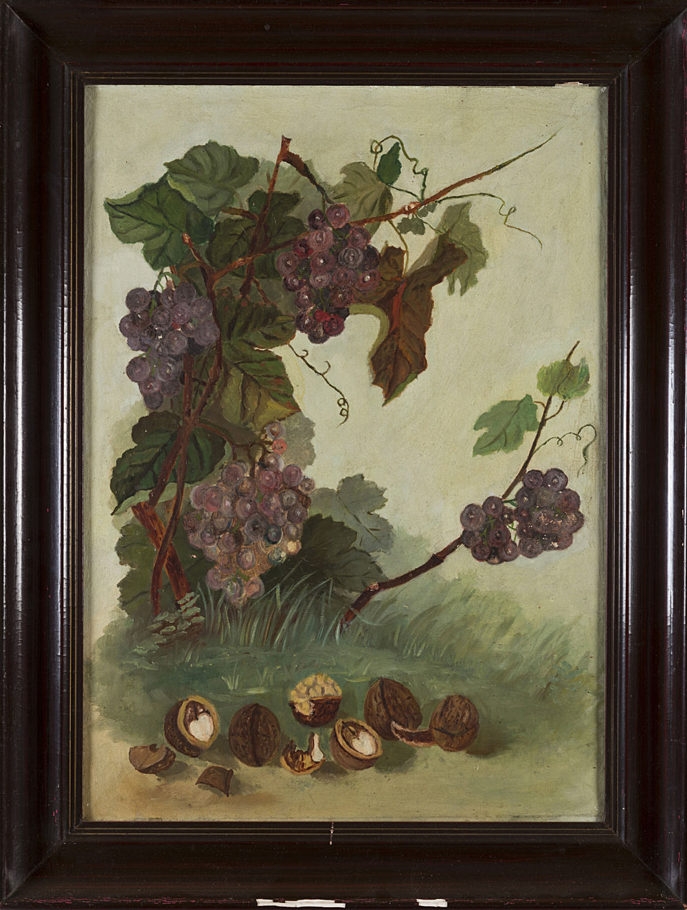 Ignoto sec. XX 'Natura morta con uva e noci' olio su tela (cm 60x42) In...