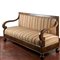 Divano in noce con schienale squadrato, montati a ricciolo intagliati...