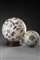 Due elementi decorativi di forma sferica in vetro soffiato decorati a...
