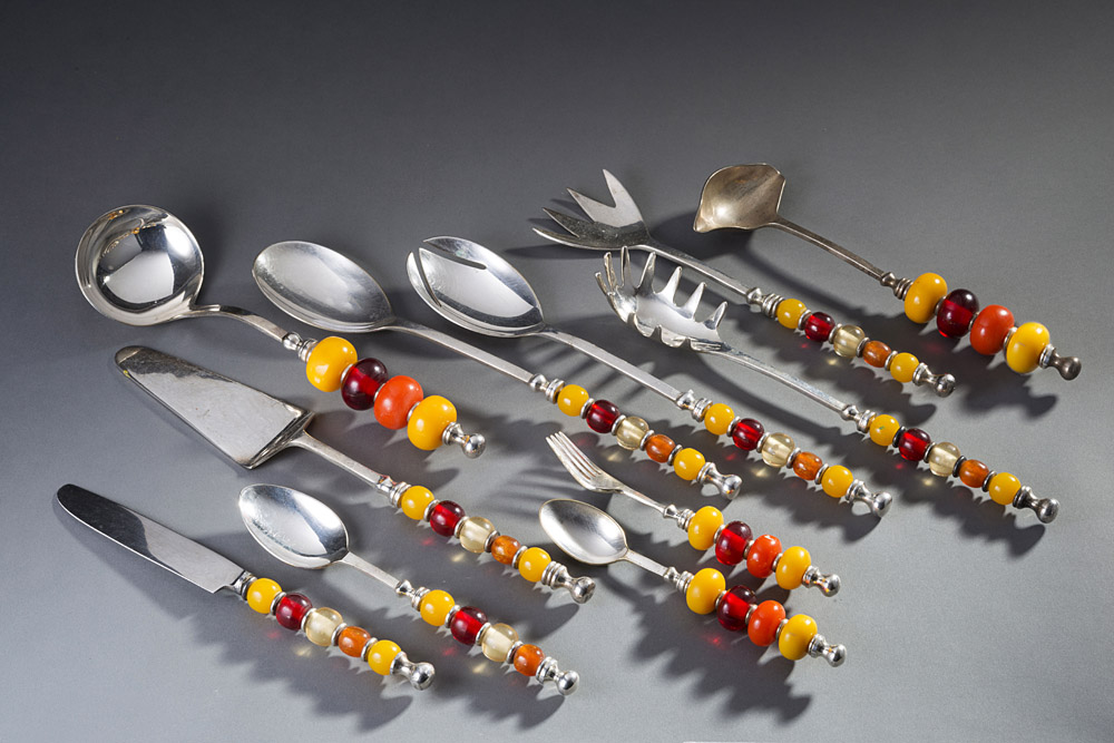 Parte di servizio di posate in metallo argentato con prese decorate a...