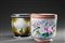 Manifatture diverse Lotto composto da due cachepot in porcellana policroma a...