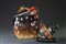 Lotto composto da un curioso orologio a muro a forma di gallo che esce dalla pentola ed un fermaporta in metallo a forma di gallo Lot comprising a cock wall clock and a cock doorstop