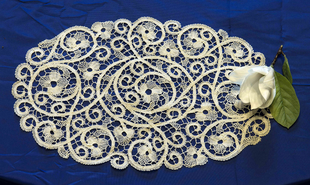 Centro ovale tombolo (cm 38x23) (difetti) Bobbin lace oval doily (defects)
