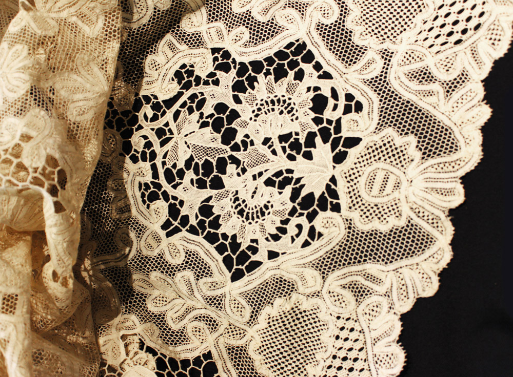 Contorno per tavolo di forma rotonda, punto Milano e Venezia. Sec. XX (120...