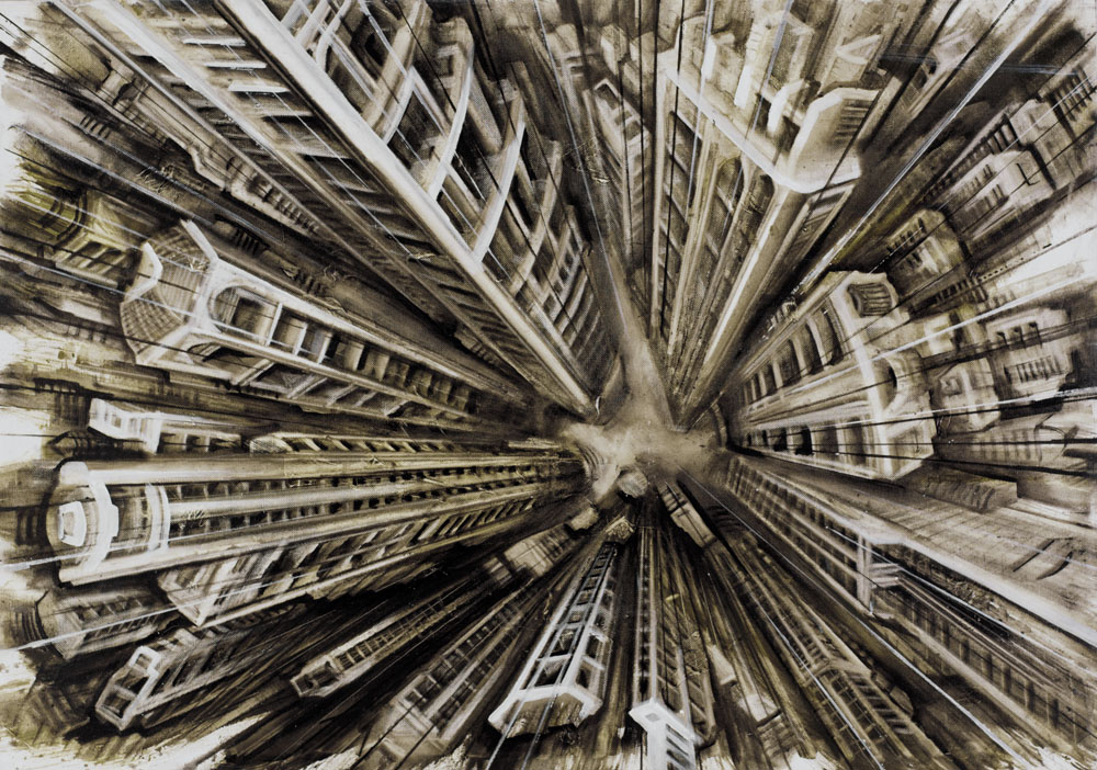 FABIO GIAMPIETRO Milano 1974 Vertigo, 2009 olio su tela cm. 70x100, firma, titolo e anno al retro, dichiarazione d'autenticità dell'artista e timbro della Fabbrica EOS su foto, opera senza cornice.