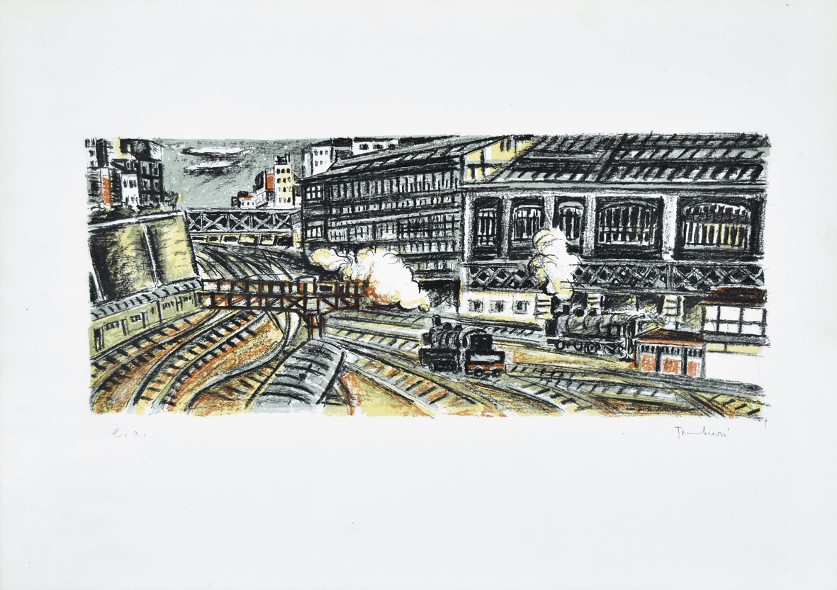 TAMBURI ORFEO Jesi 1910 - Parigi 1994 La stazione litografia es. e.a. 50x70 firma in basso a destra tiratura in basso a sinistra