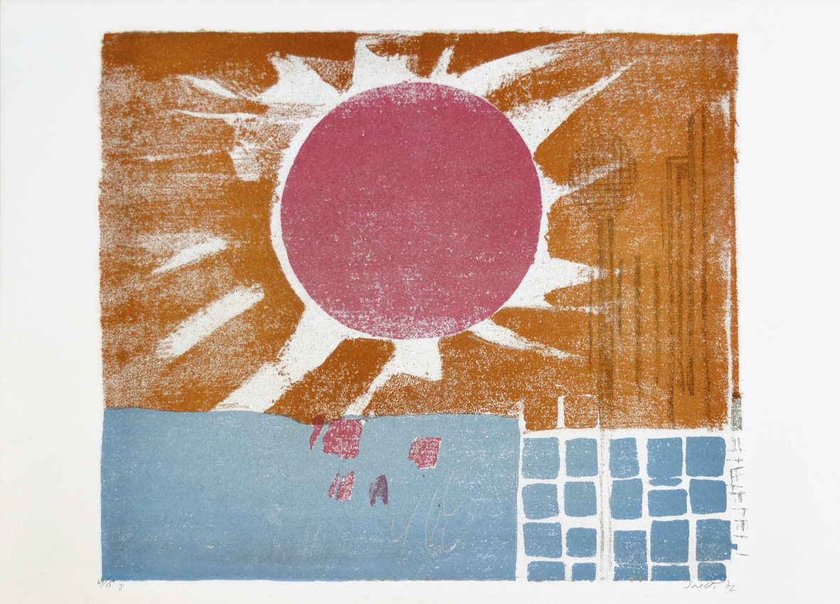 SAETTI BRUNO Bologna 1902 - Venezia 1984 Sole 1977 litografia es. 44/150 50x70 firma e data in basso a destra tiratura in basso a sinistra pubblicato sul libro "Sei muri di Saetti" Galleria della Grafica di Ponte Vecchio timbro a secco Litoriginale di Saetti in basso a destra