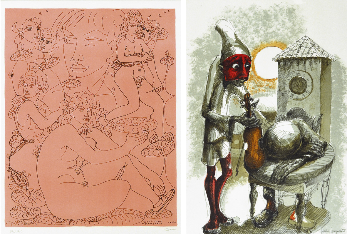 AUTORI VARI Soggetti vari lotto di 2 litografie Zancanaro: Siciliana...