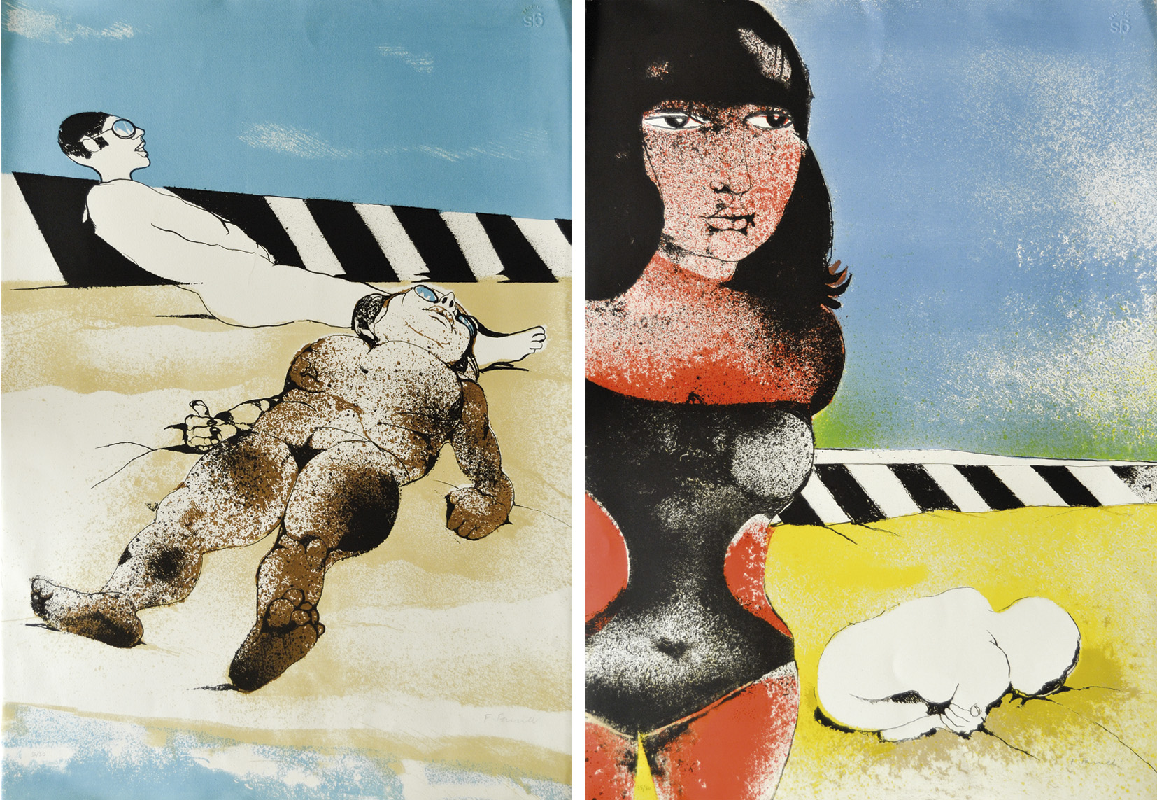 FARULLI FERNANDO Firenze 1923 - 1997 La donna e il mare lotto di 2 litografie es. 35/50 70x50 cad. firma in basso a destra tiratura in basso a sinistra timbro a secco edizioni d'Arte Santacroce Firenze in alto a destra