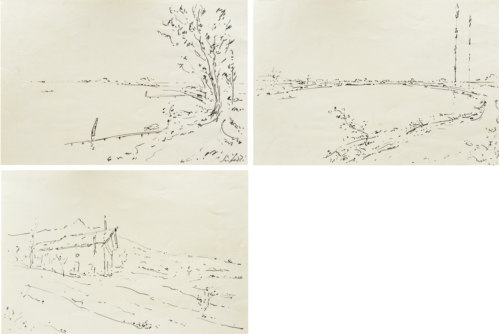 SEIBEZZI FIORAVANTE Venezia 1906 - 1975 Paesaggi lagunari lotto di 3 disegni...