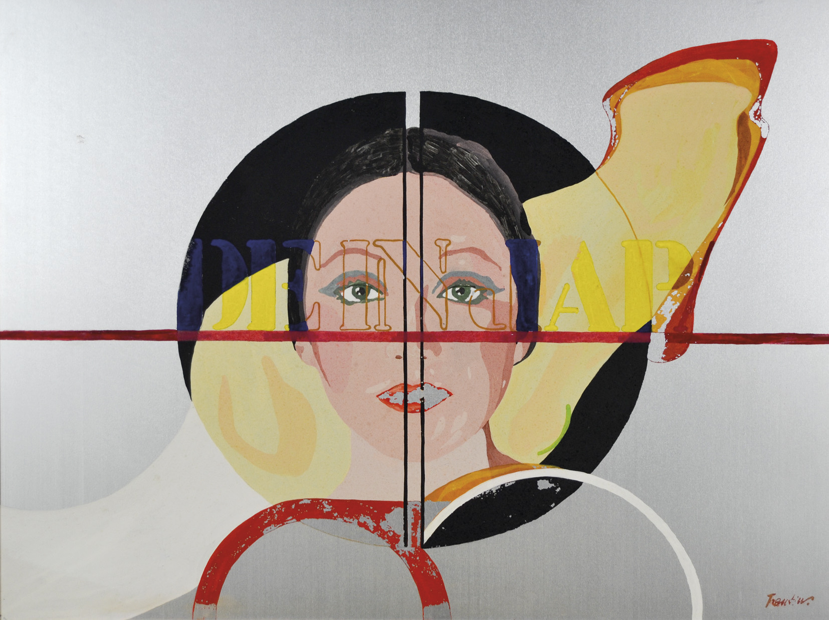 TRENTIN MAURIZIO Venezia 1948 Figura al chicco 1973 tempera su acciaio 46x52 firma in basso a destra e al retro autentica dell'Autore su etichetta al retro Monografia pag. 18