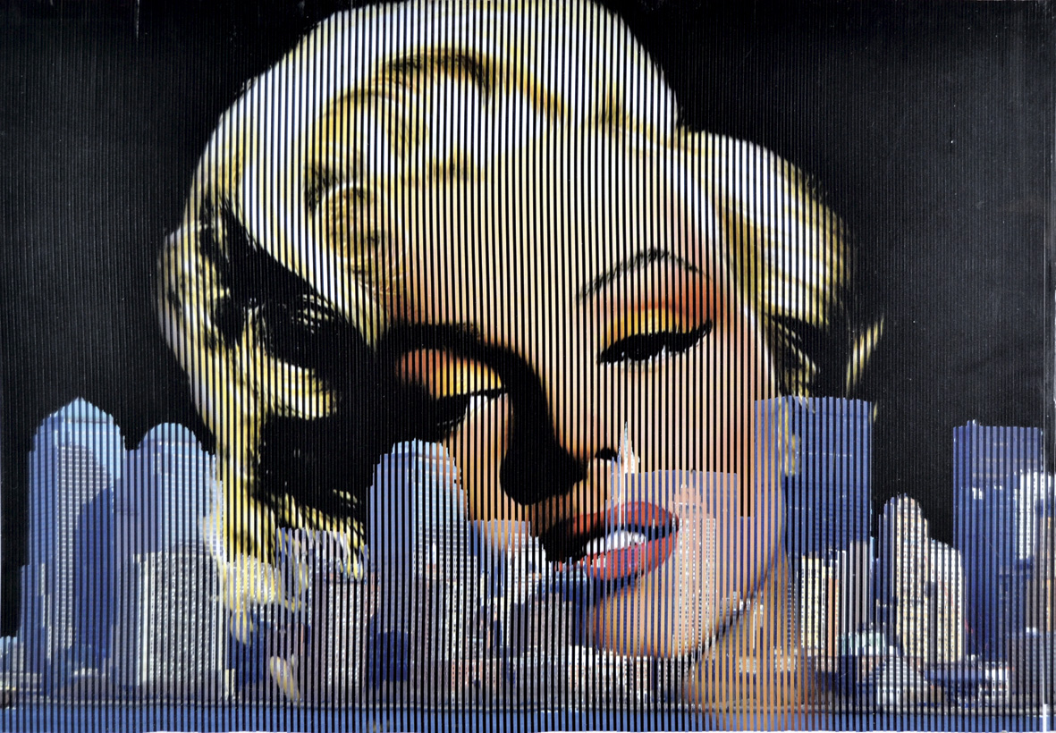 MALIPIERO Brescia 1934 Marilyn Monroe tecnica mista e collage su cartone 44x63 firma al retro autentica dell'Autore su foto