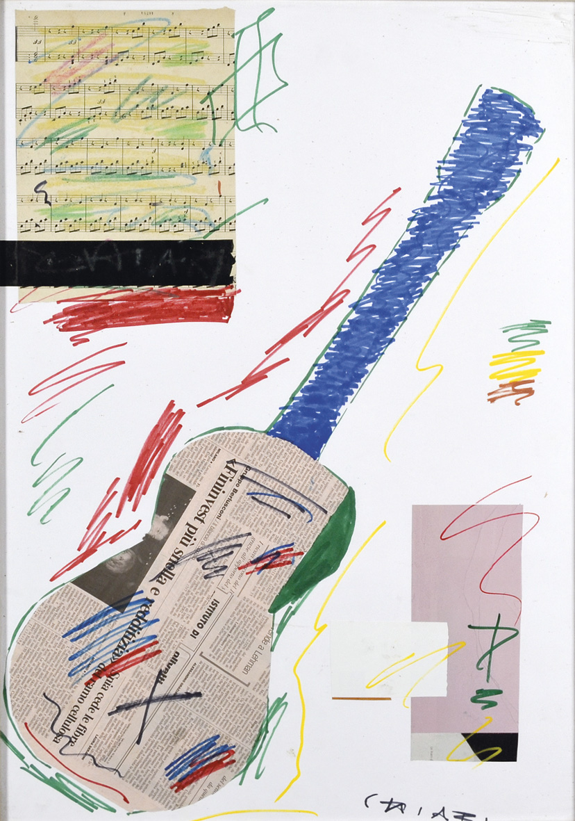 CHIARI GIUSEPPE Firenze 1926 - 2007 Chitarra tecnica mista e collage su carta 70x50 firma in basso a destra autentica dell'Autore su foto