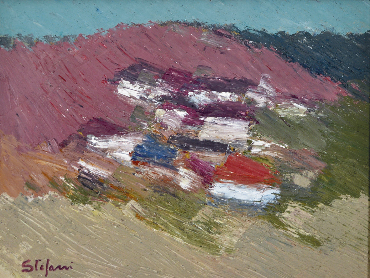 STEFANI OTTORINO Volpago (Tv) 1928 Paesaggio in rosa 1981 olio su tavola 30x40 firma in basso a sinistra firma data e titolo al retro