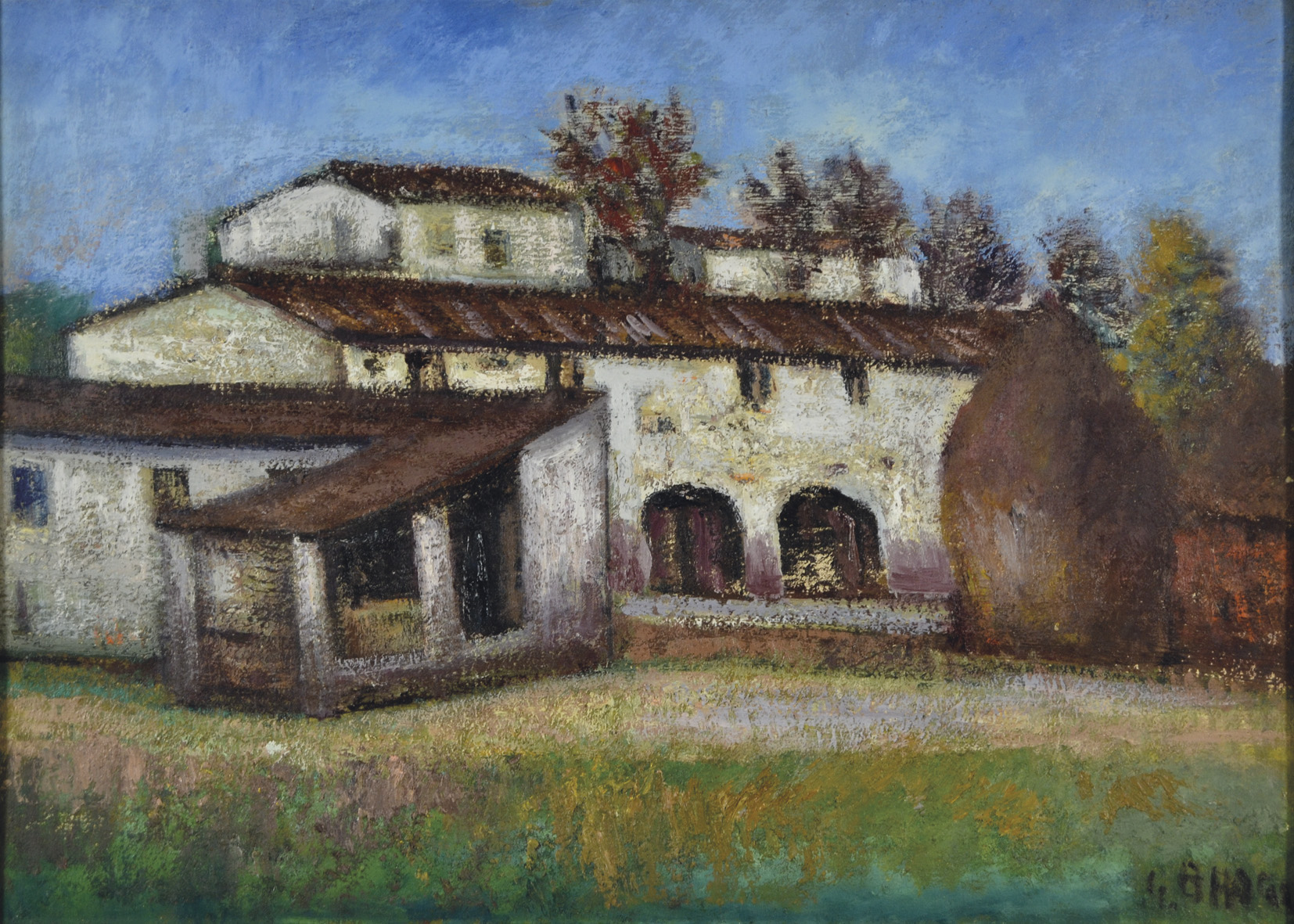 BROGI GINO Prato 1902 - 1989 Casa colonica 1967 olio su cartone telato 40x55 firma in basso a destra firma data e titolo al retro