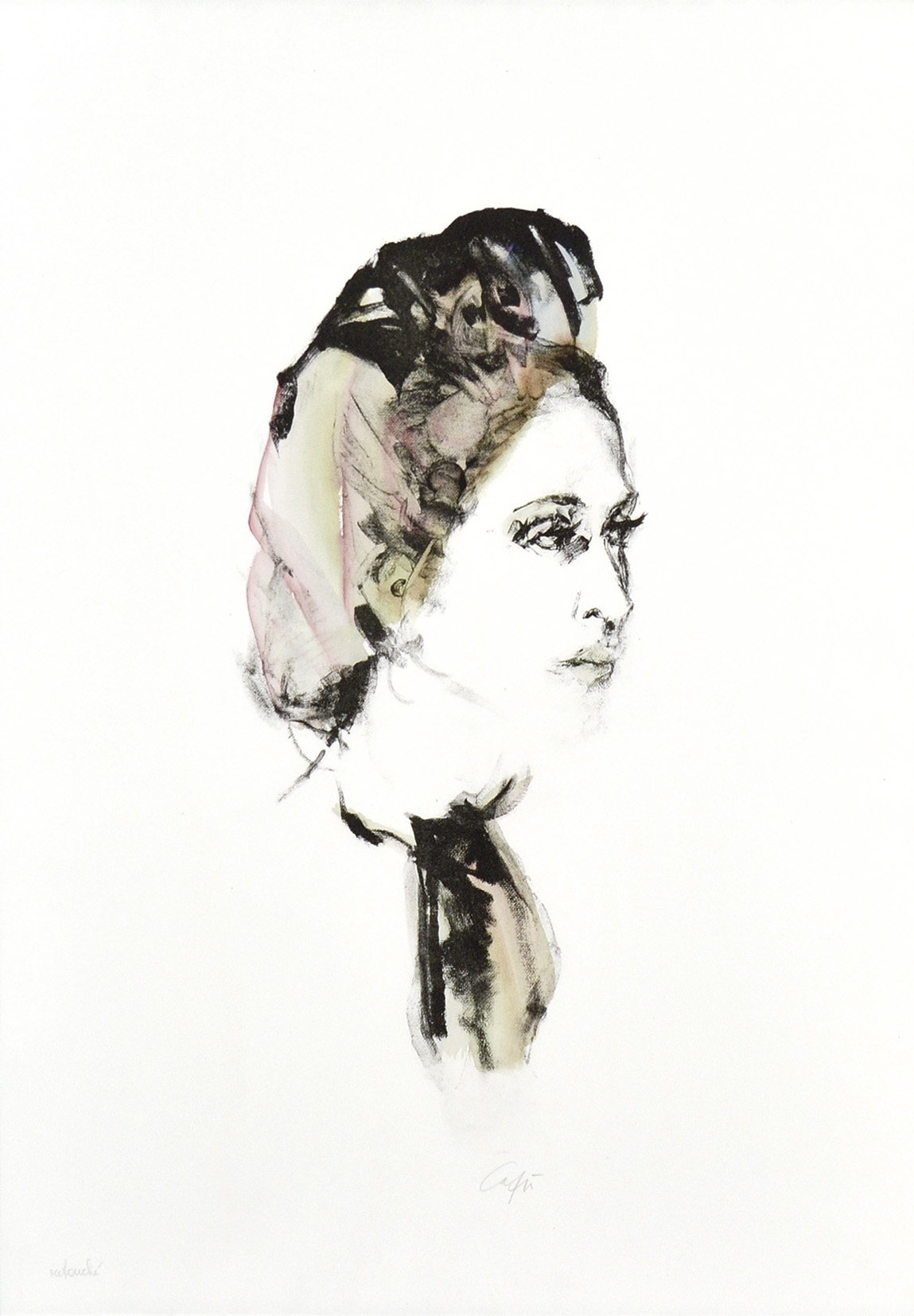 CAFFE' NINO Alfedena (Aq) 1909 - Pesaro 1975 Volto liografia retouchè 70x50 firma in basso al centro