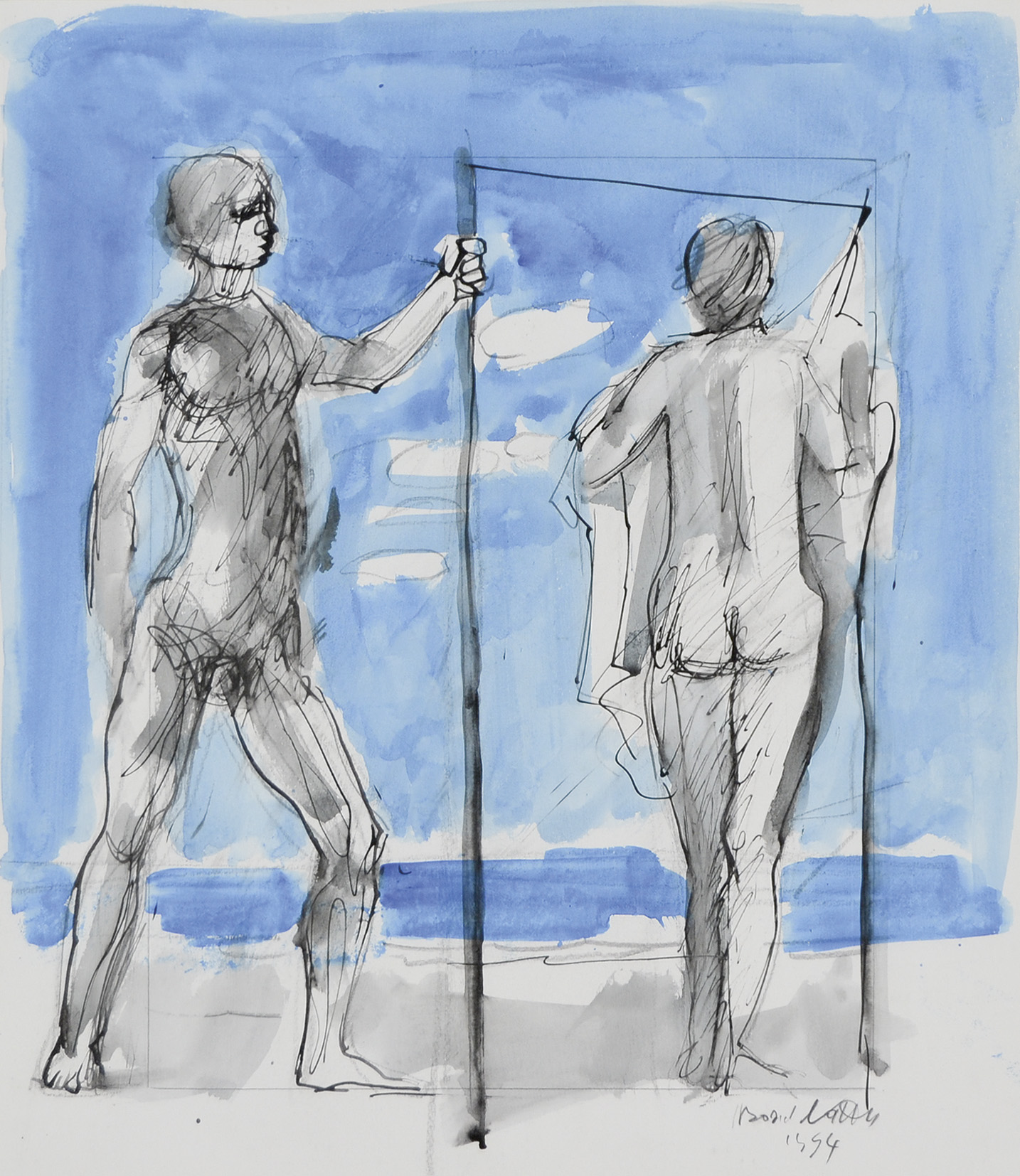BOSCOLO NATTA Chioggia 1925 - Venezia 2002 Figure 1994 tecnica mista su cartoncino 46x40 firma e data in basso a destra autentica autentica dell'Autore su foto