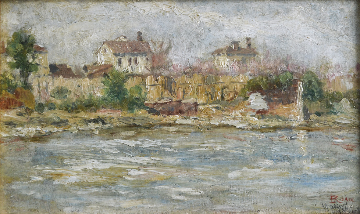 ROSA LUIGI 1850 - 1919 Mazzorbo 1918 olio su tela 25x42 firma data e titolo in basso a destra