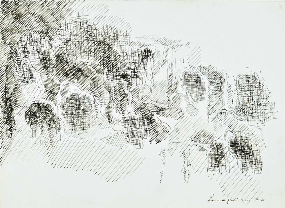 LAVAGNINO PIERLUIGI Chiavari 1933 - Milano 1999 senza titolo 1970 disegno a china su carta 24x33 firma in basso a destra