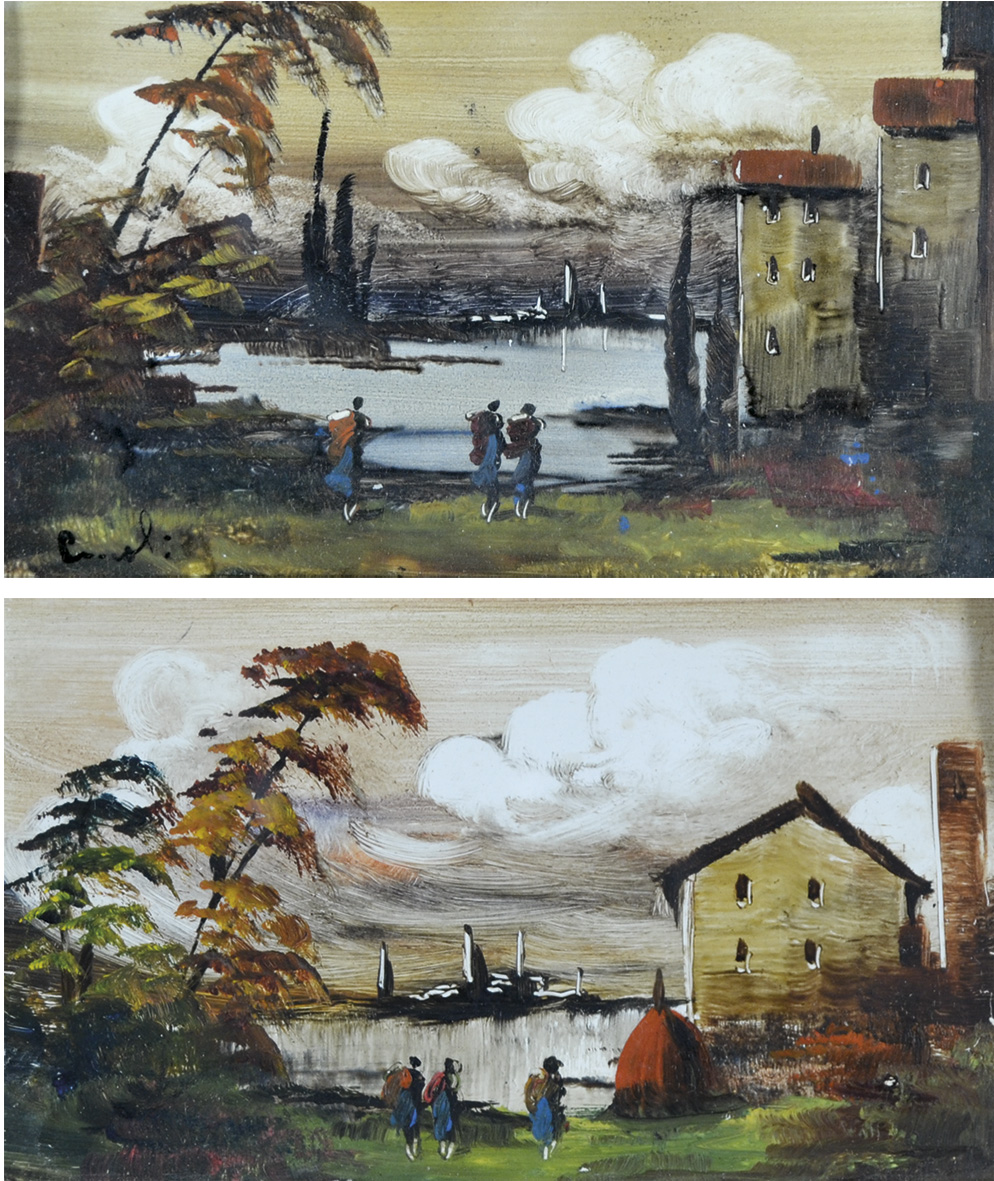 CARGNEL LUCIO Treviso 1903 - Milano 1998 Paesaggi lotto di 2 olii su lastra 7x12 cad. uno firmato in basso a sinistra